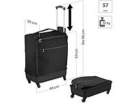 Alles Wichtige dabei - auf kleinem Raum: Immer dann, wenn es nicht gleich der große Reisekoffer sein muss, kommen die Trolleys in Spiel! Sie eignen sich ideal z.B. für die Kurzreise übers lange Wochenende. Mit 46, 57 und 78 Litern Fassungsvermögen haben Sie für jeden Zweck den richtigen Koffer.Bequem und sicher packen: Dank umlaufendem Reißverschluss packen Sie die Trolleys so bequem wie einen Koffer. Und per Kreuz-Spanngurt sichern Sie Ihre Kleider zudem gegen Verrutschen und Knittern.